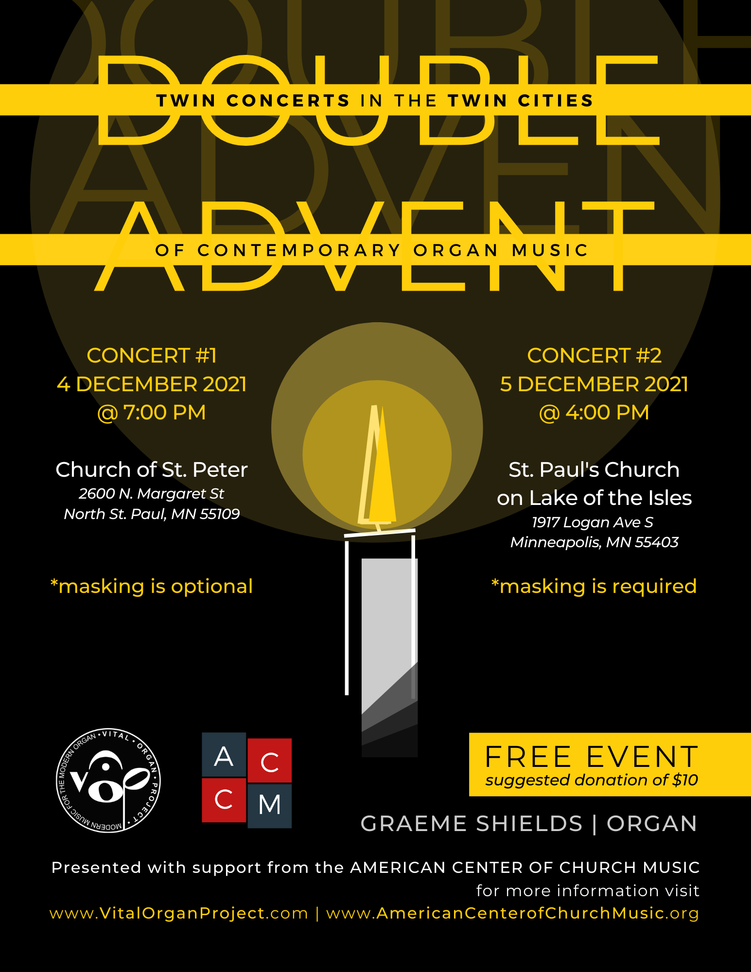 These two concerts are centered around contemporary organ music with Advent and holiday themes. The first concert at Church of St Peter features music for organ and electronics. The second concert at St Paul’s Church on Lake of the Isles features a mechanical action instrument.