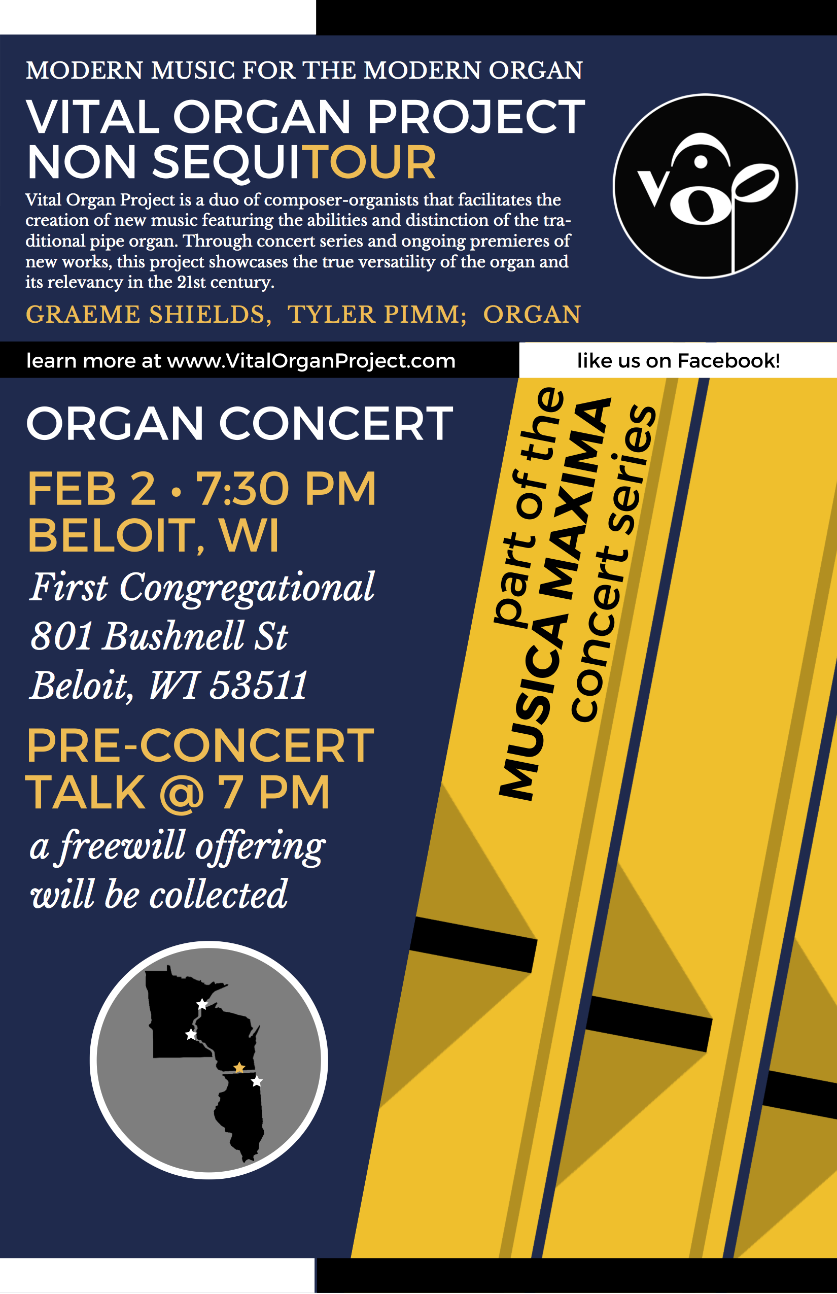 Beloit, WI is the final destination on our Non SequiTOUR! Part of the Musica Maximum Concert Series, the concert will begin at 7:00 PM at First Congregational Church with a pre-concert talk 30 minutes beforehand.